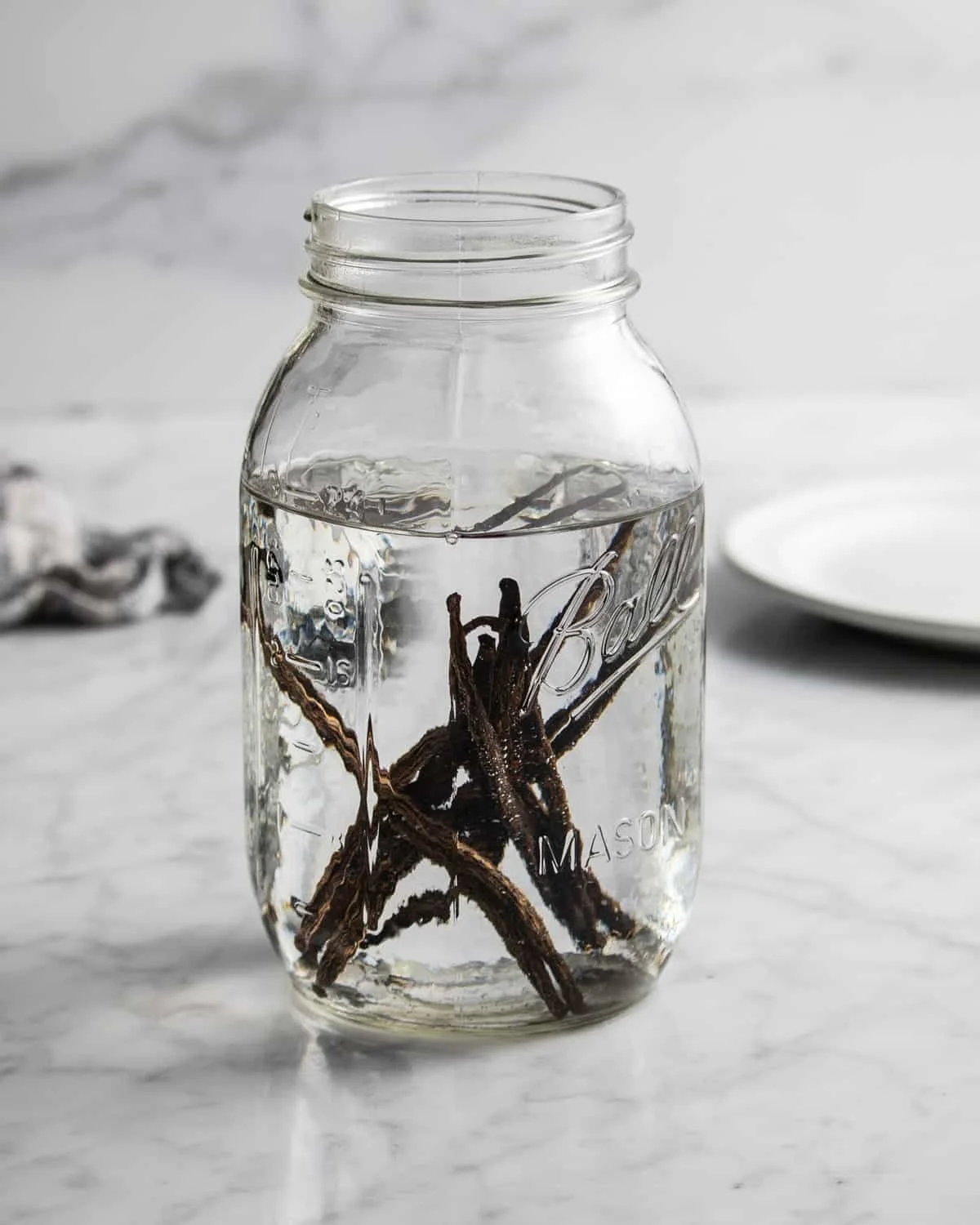 All you need to get started is a sterilized glass jar with a tight lid, a sharp knife, alcohol, and good quality vanilla beans. To make 1 cup of vanilla extract, you’ll need 1 cup of alcohol (I prefer using vodka it is flavorless and really lets the flavor of the vanilla beans shine through), and 3 high-quality vanilla beans. Heilala Vanilla Beans are one of my favorite go-to’s and have a wonderful rounded flavor.